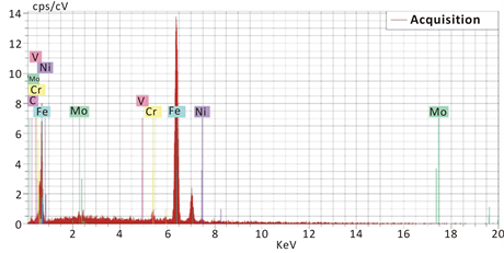Figure 8. EDX of quenched steel sample 2 after tempering at 575˚C.