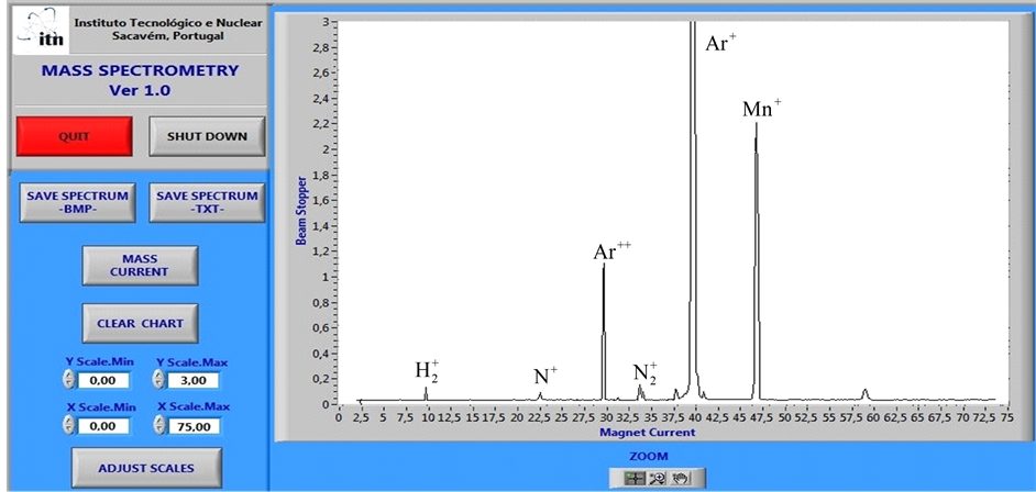The user interface for the develop application is show in Figure 2, where a mass spectrum done before a Manganese (Mn) Implantation, using the oven source version.