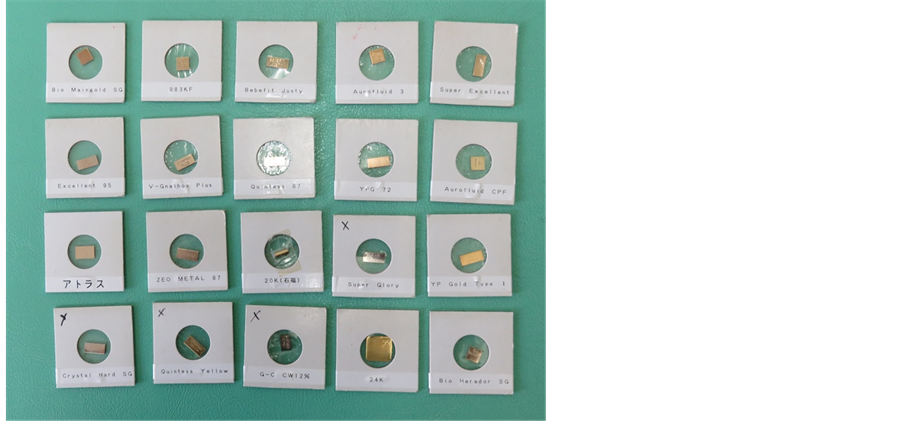 Figure 6. The metal samples. The best metal to make the inlay was selected from these metal samples.