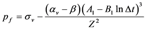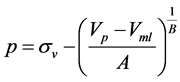Bowers (1995) calculated the effective stresses from measured pore pressure data of the shale and overburden stresses (using Equation (1)). The pore pressure can be obtained from the velocity as: