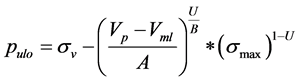 The effective stress and compressional velocity do not follow the loading curve if formation uplift or unloading occurs, and a higher than the velocity in the loading curve appears at the same effective stress. Bowers (1995) proposed the following empirical relation to account for the effect of unloading curves [16] :