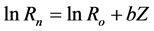 Rn is the shale resistivity at the normal (hydrostatic) pressure; n is the exponent varied from 0.6 to 1.5, and normally n = 1.2.