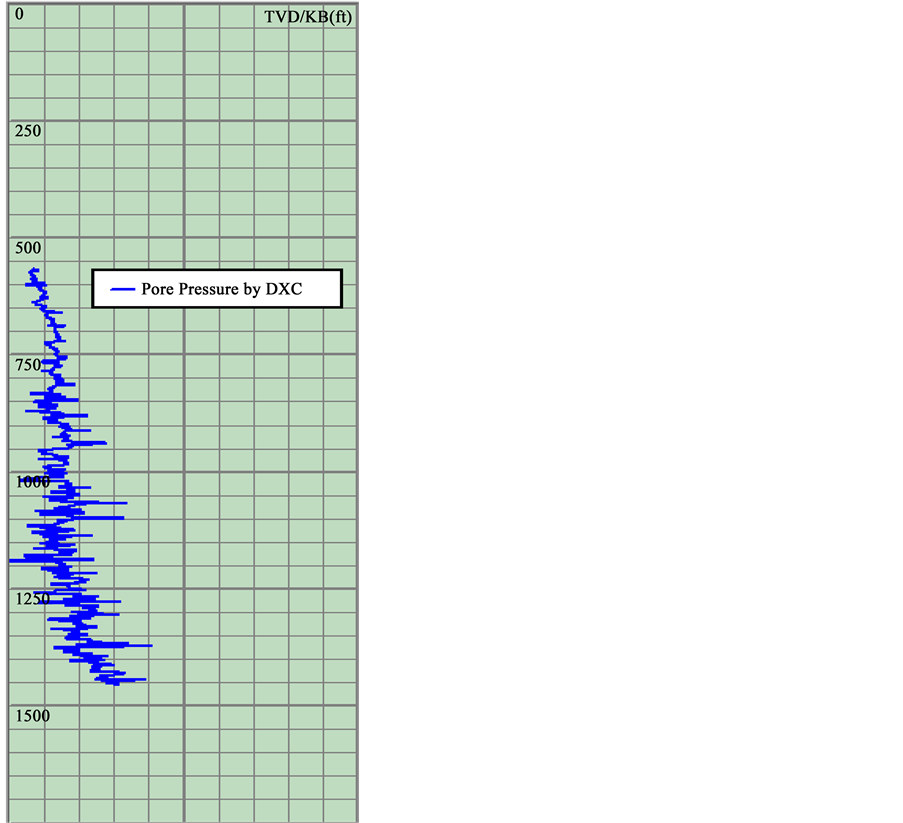 D-Exponent Methodology is considered to be an appropriate method of pore pressure estimation while drilling. The methodology for pore pressure prediction known as the D exponent is a function of an exponent of adjustment that was originally defined for the Gulf of Mexico [12] . A restriction of this methodology is the Normal Compact Trend (NCT), it needs to be interpreted from the data [13] .