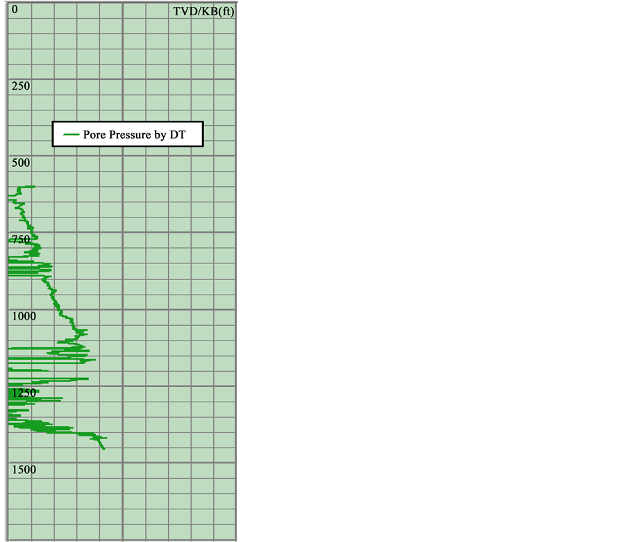 Theory: A sonic log was run for LAGIA-8 and the recorded data was plotted on a semi log as follows the graph in the Figure 5(a). After plotting the data, our next step was to predict the pore pressure from the sonic log, so we used the empirical equation (Eaton’s Method) for pore pressure gradient prediction from sonic compressional transit time [11] , show the Equation Number (13).