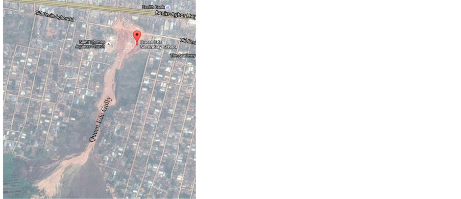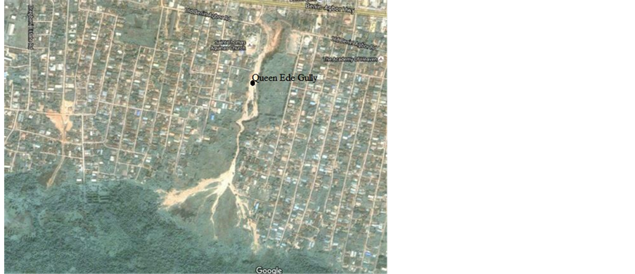 Figure 5. Satellite imagery of university of Benin gully site.