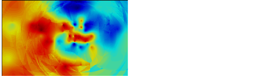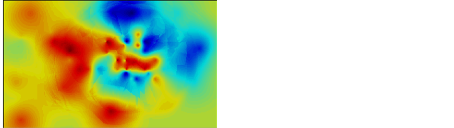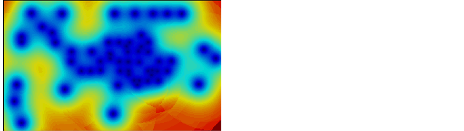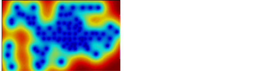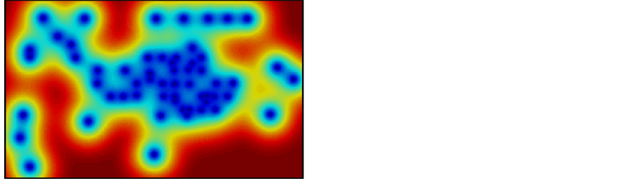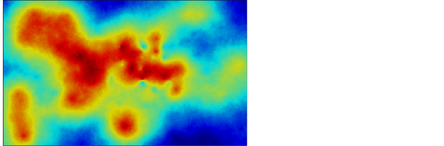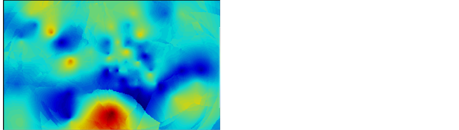 Figures 11-13 give the comparative result of simple Kriging with maximum range, a medium range of 3600, and minimum range respectively. As it can be seen, the less the range, more isolated points are shown in the map.