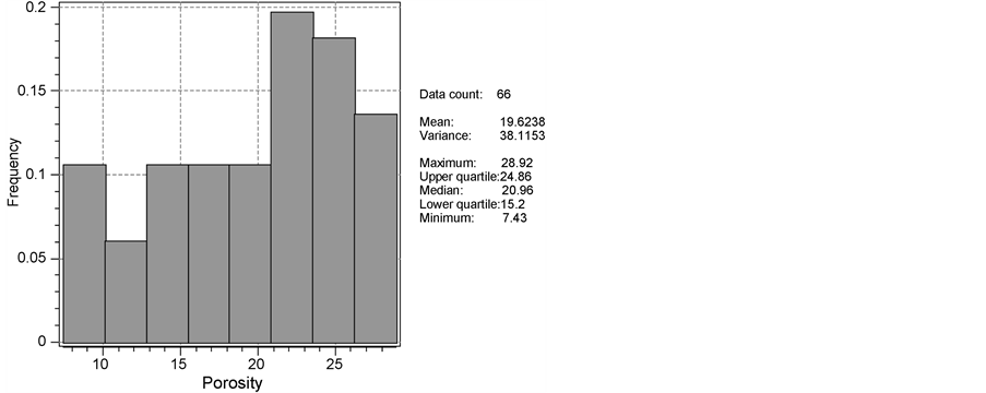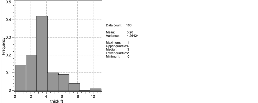 From the above graphs, the distributions of thickness, porosity and permeability can be observed. The coefficient of variance can be calculated as [10]