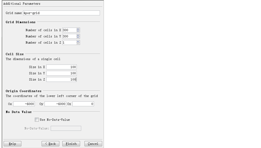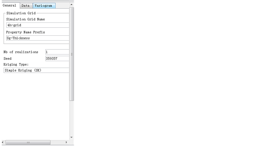 Figure 10 gives the software set for simple Kriging method for thickness grid. This means the software will use simple Kriging method to add a map of thickness for whole grid system under “4 h-grid” bar, conditioned on the thickness
