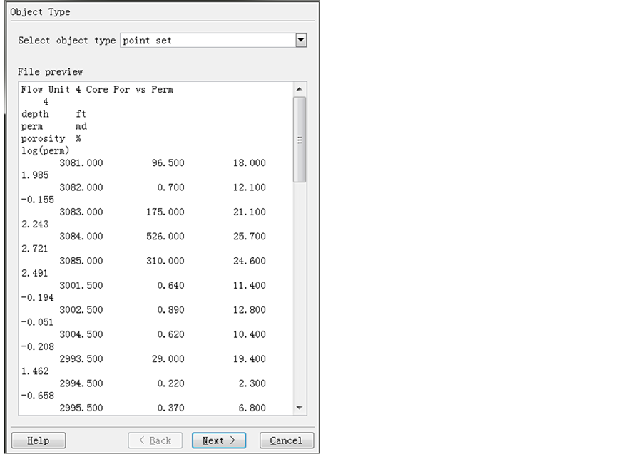 First, the permeability file is a one dimension data and only has depth data without any X and Y coordinate, which is shown in Figure 19. This means the searching ellipsoid should be very large to cover sufficient data points. However, Second, only the cross variogram for permeability data and porosity data can be get in the permeability data file, it is not able to get the cross variogram for the porosity data file and permeability data file. Even the minimum conditioning data is set to be only one, and the searching area covers over all the area of the grid system, there are still some unsampled location with empty surrounding grids. Thus, only the estimation for the grid system of permeability is realized.