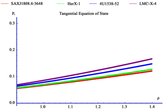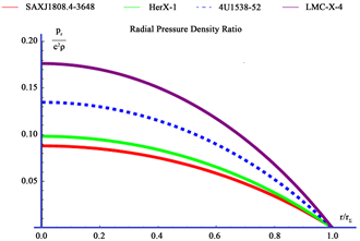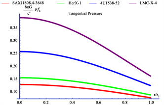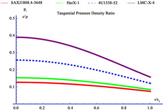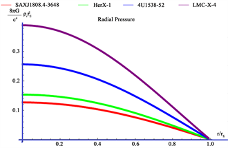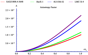 3) At boundary radial pressure, shold be equal to zero while tangential pressure, may not be equal to zero i.e. pressure anisotropy is zero at the center i.e. . The pressure anisotropy should be increased with radial distance from the center of fluid distribution and at the surface it must be for zero surface radial pressure.