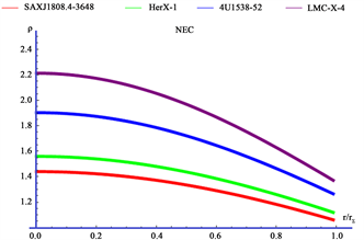 Some researchers, Sah and Chandra [20] , Komathiraj and Maharaj [21] , Herrera et al. [22] , Thirukkanesh and Regel [23] , Chaisi and Maharaj [24] , Sunzu et al. [25] , Maurya and Gupta [26] and Bhar et al. [27] etc. gave physically accepted solutions of Einstein’s field equations for anisotropic fluid distribution. The researchers Sah and Chandra [28] , Whitman and Burch [29] , Tikekar [30] , Ivanov [31] , Gupta and Kumar [32] , Herrera et al. [33] [34] [35] , Tewari and Charan [36] [37] [38] , Tewari [39] , Ivanov [40] [41] [42] [43] , Maurya and Gupta [44] etc gave remarkable work in relativistic astrophysics. The stellar model given in this paper is the contribution of the work related to charged fluid distribution, done by Sah and Chandra. In this work, we discuss physically accepted solutions for anisotropic fluid distribution in addition with energy conditions, variation of mass with central density, equation of state and mass-radius relationship in contest of some astrophysical objects, SAXJ1808.4-3658, HerX-1, 4U1538-52 and LMC X-4.