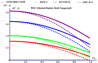 realistic anisotropic star models i.e. . For the EoS, we plot a graph for pr and pt versus against r as shown in Figure 13(a) and Figure 13(b).