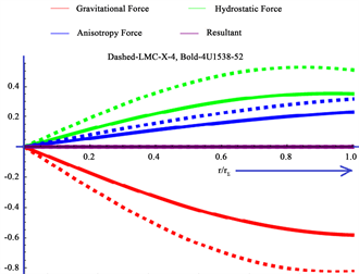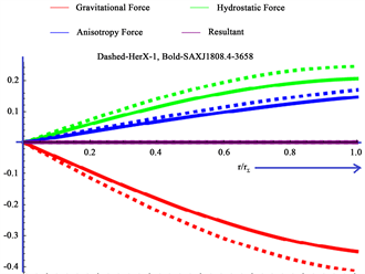 The graphical representations of above mentioned forces and their resultant for astrophysical objects SAXJ1808.4-3658, HerX-1, 4U1538-52 and LMC-X-4 are shown in the Figure 8(a) and Figure 8(b).
