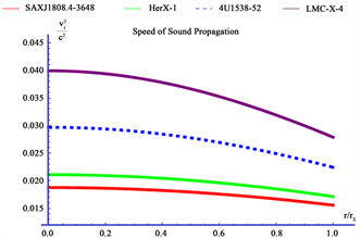 Thus the equation of state for highly dense astrophysical object indicates that the speed of sound should be decreased with increasing radial distance.