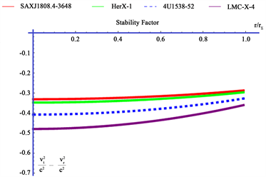 In our model the variation of radial and tangential adiabatic indices with are represented graphically in Figure 11(a) and Figure 11(b). The radial relativistic adiabatic index is greater than .
