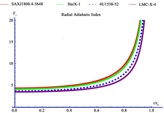 6) The realistic adiabatic index and should be positive and radial adiabatic index, should be greater than .