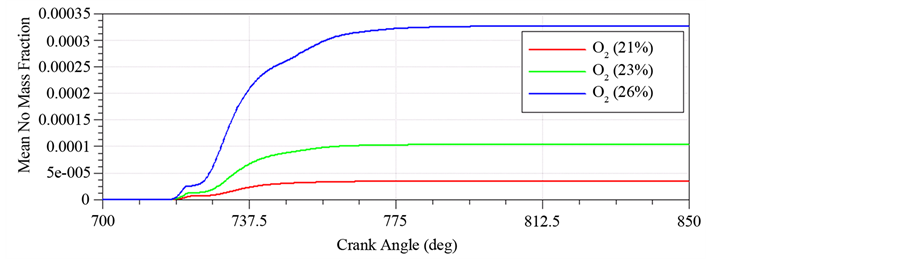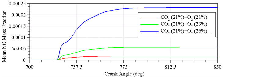 The Figure 4 shows that with increase of oxygen content, mean mass fraction of NO in exhaust is corres-