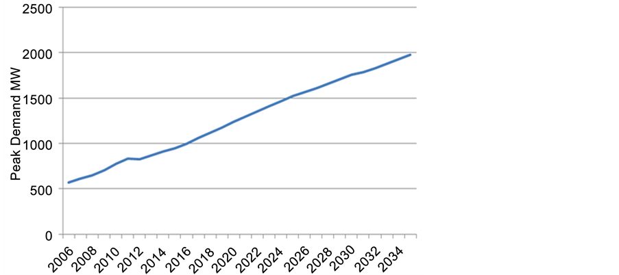 order to meet the growing demand, Sabah’s electric utility―Sabah Electricity Sdn. Bhd (SESB) is planning to expand the generation capacity over the next 10 years, and phases out some MFO plants from the overall mix. Total generation from diesel by SESB in 2014 accounts for of 488 GWh and SESB is still dealing with the issue of lack of generation capacity to meet the growth in electricity demand. Sabah electricity demand is forecasted to grow at a rate of 5.8% through out the coming years as shown in Figure 5 [4] .