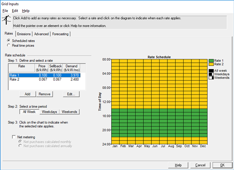 The energy purchased from the utility and the net energy sold by the building, as well as the demand and energy charges are presented in Table 11.