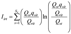 where qi is a posterior distribution and pi is a prior distribution. The information index in Equation (8) was popularized by Theil [5] . Later, Theil [6] exemplifies much of this work which focuses on the use of the