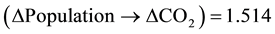 The value of the slope for the relation Population with CO2 Equation (11) is: