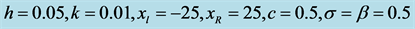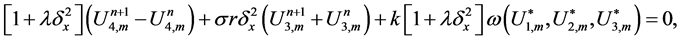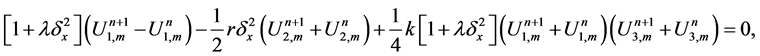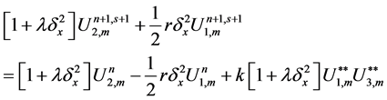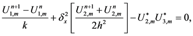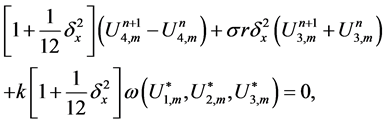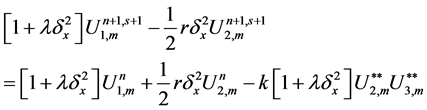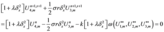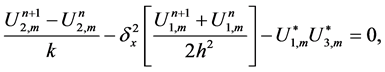The scheme in (25)-(28) is a nonlinear implicit scheme with block nonlinear tridiagonal structure. The fixed point method is used to solve this system. The scheme is of second order accuracy in both direction space and time. The scheme is unconditionally stable using the von Neumann stability analysis.