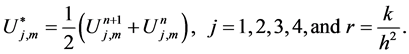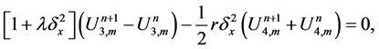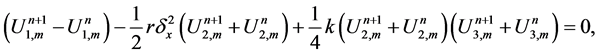 The Crank Nicolson like scheme for the system (20)-(23) can be displayed as follows