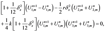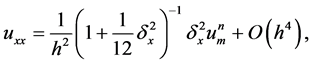In order to improve the accuracy in space direction, we approximate the second space derivative using the compact approximation