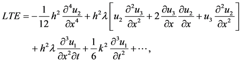 By using Taylor’s series expansions of all terms in Equation (44), we will end with the local truncation error (LTE)