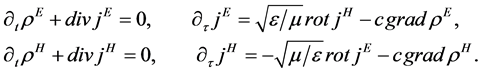 Remark. We must note that the first scalar equation of classic Maxwell Equation (9) (where electric charges can depend on time) contradict to wave nature of EM-field. But Equation (9) is true only if charge and currents are independent on time. The same one relates to Eq. for gravitational field which is true only for static mass.
