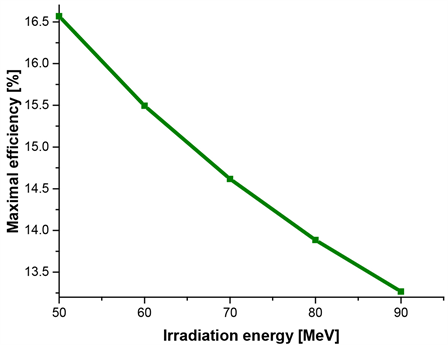 Figure 12. Maximal conversion efficiency versus irradiation energy.
