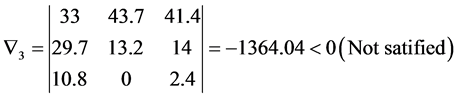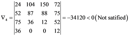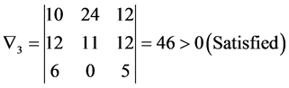 A square matrix H is said to be positive inner-wise [33] [34] when all the determinants starting with the centre element(s) and processing outwards up to entire matrix are positive, then the system is asymptotically stable. The proposed necessary and sufficient conditions from the Equations (10) to (14) are applied for the following illustrations. The system is said to be stable only it satisfies all necessary and sufficient conditions.