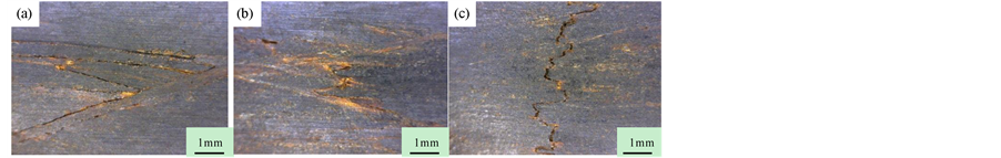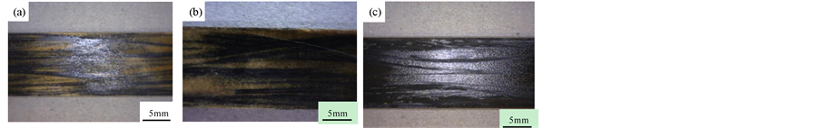 Figure 6. Photographs of surface of specimens (fiber 100%). a) 160˚C; b) 180˚C and c) 200˚C.