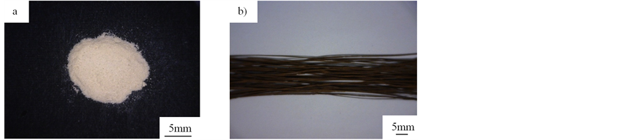 Figure 1. Photographs of Bamboo. (a) powder and (b) fiber.
