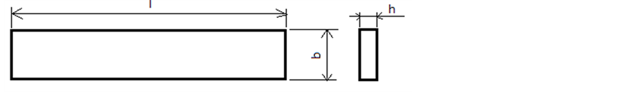 Figure 3. Shape and dimensions of flexural specimen (l = 100 mm, b = 15 mm, h = 3 mm).