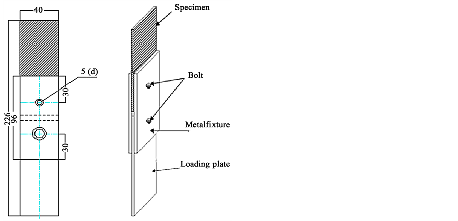 Joining of composite structure members is a design complicated problem, this can be due to the joint passes through geometry of structure and material discontinuity [1] . The double lab joint testing set up which is shown in Figure 4 is manufactured for purpose of double lab joint bearing strength measuring. The test device contains three steel plates, two of them for holding the specimens with bolts and the other one is loading plate member. The composite specimens