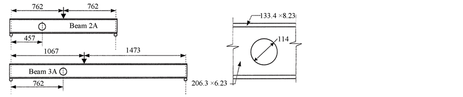Tables 1-3 present the physical and geometrical characteristics of the beams numerically models by Chung et al. [10] and Chung and Lawson [2] , based on experiments performed by Redwood and McCutcheon [24] . The numerical results here presented were elaborated with the material and geometry used by Chung et al. [10] . A direct comparison of the obtained results with Chung et al. [10] results, can confirm the accuracy of the pro- posed finite element model that was later used in a subsequent parametric analysis of steel beams with web openings. The models adopted in the present investigation are depicted in Figure 7 and Figure 8.