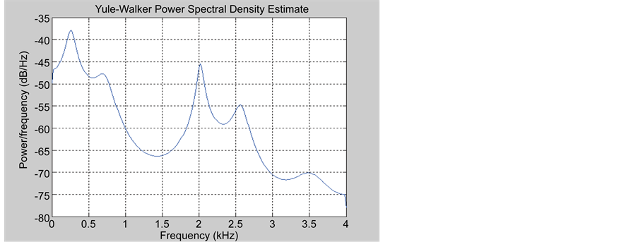 Figure 8. Estimate of the PSD (Yule Walker) the word “five”.