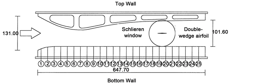 In Figure 1, circle containing double wedge airfoil represents the Schlieren window.