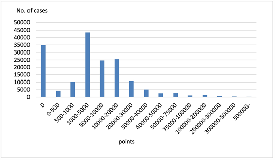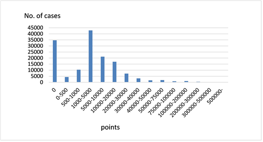 Japan measures medical expenditures in points, and 10 yen per point has been paid to hospitals since 1958 [36] . In the present analysis, we summed a total of 6,312,125 receipts, and calculated the medical costs of individuals in each fiscal year. We used a dataset containing 175,123 cases for which both the results of checkups and medical costs were available in the same fiscal year. For details of the dataset see Nawata and Kimura [24] .