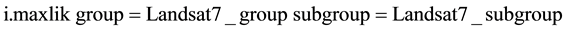 The “i.group” expression (Equation (12)) was used to select all relevant bands (blue band of Landsat 7 ETM+, a deep blue coastal band of Landsat 8 OLI, NDVI images, and NDWI images) of the raster images.