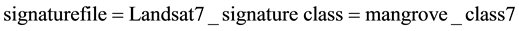 To generate statistics from the training area, the “i.gensig” expression (Equation (13)) was used. The input into the “i.gensig” for creation of signature statistics needs a ground truth training area image that is in raster format, which the conversion format has done using Equation (11).