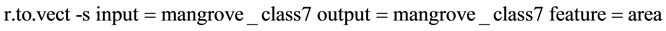 The classification algorithm was employed using the “i.maxlik” expression (Equation (14)) in GRASS GIS. The classification result was converted into vector format using the “r.to.vect” expression (Equation (15)). Quantum GIS software was then used for the final analysis of mangrove forest changes and cartography design. The overall algorithm that was used in this study was shown in Figure 2.