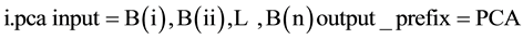 To perform PCA, this study calculated a variety of variables from all data sets: including eigenvalues, eigenvectors, and percent of importance. These values were calculated for each principal component (PC), and the results were shown in Table 1 and Table 2. To perform PCA in GRASS GIS, we employed “i.pca” expression (Equation (16)).