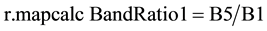 In accordance with the result of PCA analysis, we then employed GRASS GIS software to make a band ratio image using the “r.mapcalc” expression (Equation (19)).