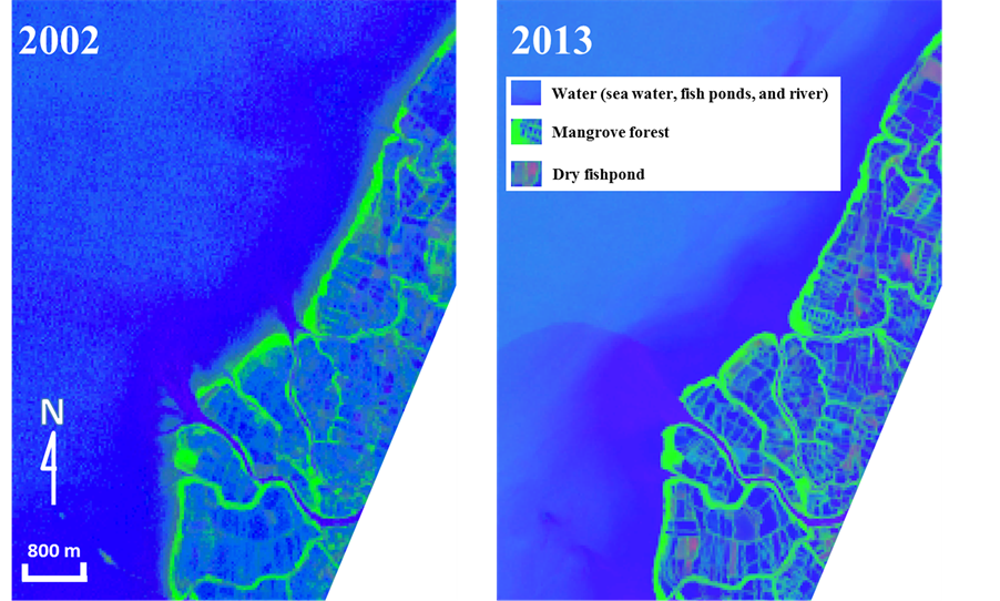Ground truth surveys confirmed that, decreases in the mangrove forest are due to the expansion of fishpond activity. Regular monitoring and assessment is needed in order to monitor the changes in the mangrove environment. Furthermore, understanding the processes of change is also needed in order to minimize the negative impact from the human-environment linkage. This approach has the potential to lead to the sustainable development of the coastal environment.
