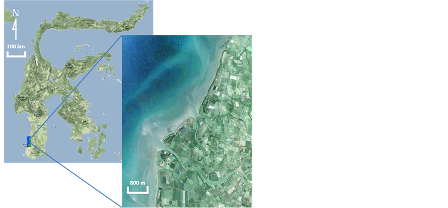Figure 1. Study area located in Maros Regency, South Sulawesi Province, Indonesia. Images are from Google Earth.
