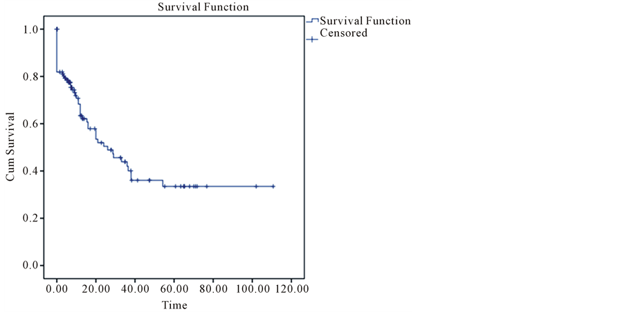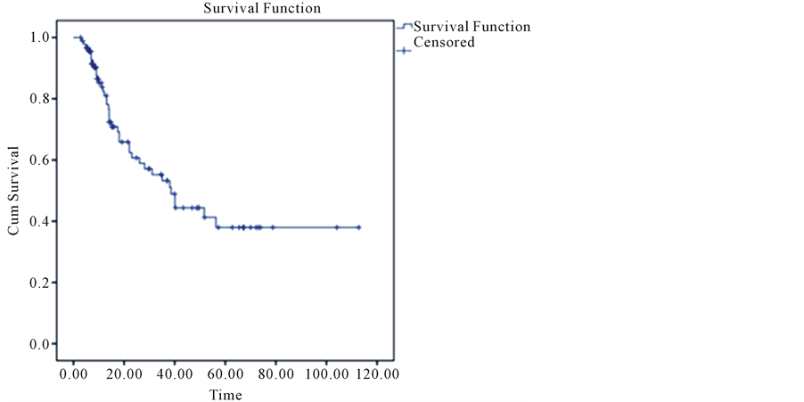 Data was analyzed using IBM SPSS advanced statistics version 20 (SPSS Inc., Chicago, IL). Survival analysis was done using Kaplan-Meier method and comparison between two survival curves was done using log-rank test. All tests were two-tailed. A p-value < 0.05 was considered significant [9] .