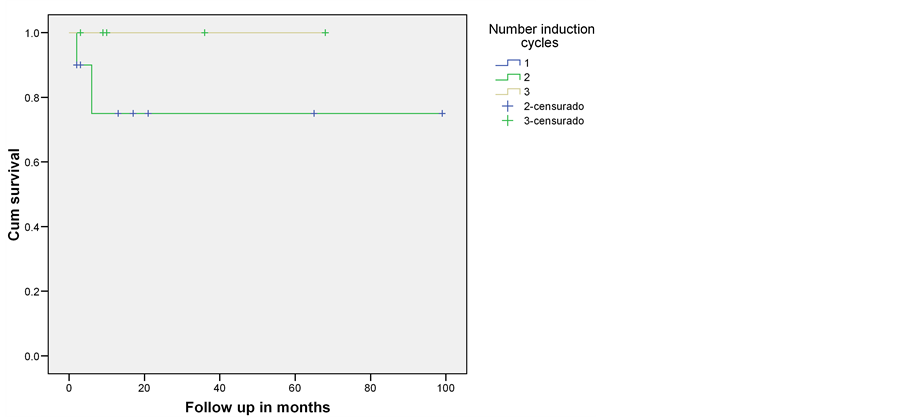 Figure 2. Overall survival stratified by number of ADE induction cycles. Instituto Nacional de Pediatría 2005-2013.