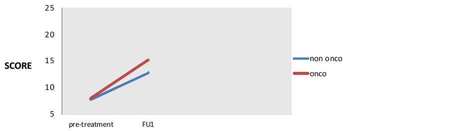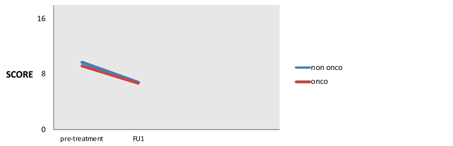 Figure 3. VAS: visual analogique scale in patients with surgery-induced menopause (onco) and In patients with physiological menopause (non onco).